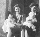 Kath and baby Carole at left. Sylvie (Jack's sister) with baby Dianne at right. Outside 7 Tucker Street Footscray |