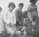 Feeding the lambs - Trudy (partly hidden), Cheryl, Ken and Judy |