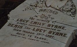 13. Lucy Emily Byrne 1893-1907Born 15th October 1892 at Gymbowen (13400) and died Natimuk aged 14 in 1907 (1645) from Appendicitis. The inscription on Lucy Emily's gravestone at Goroke reads: Sacred is the memory of